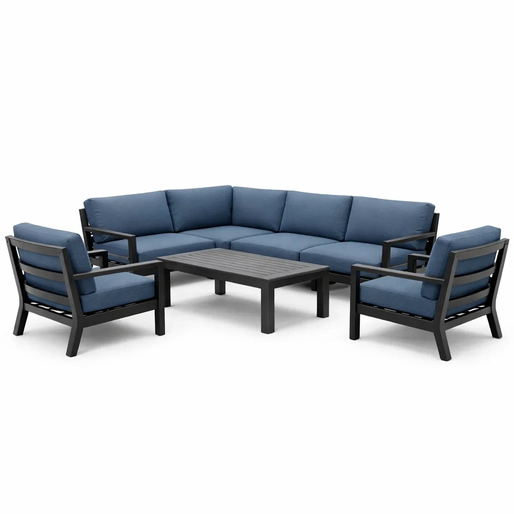 Set de canapés de salon de jardin en aluminium avec coussins en polyester bleu
